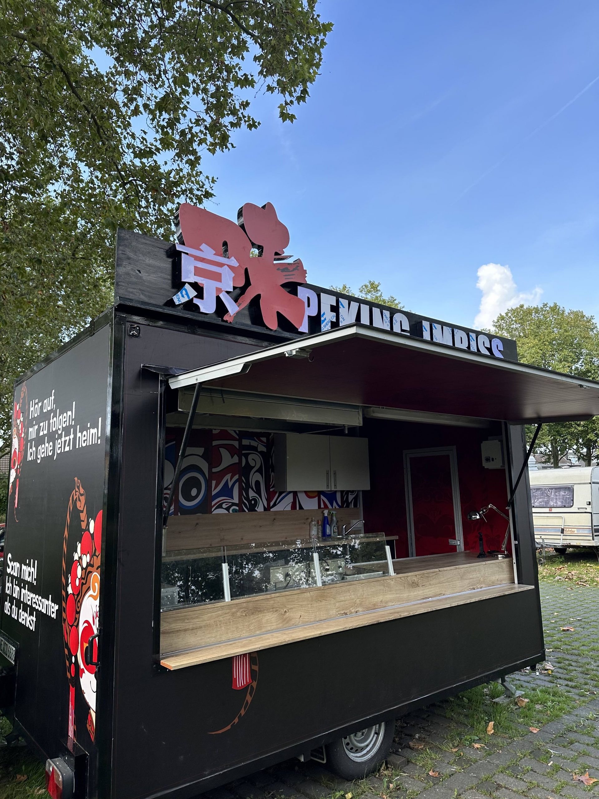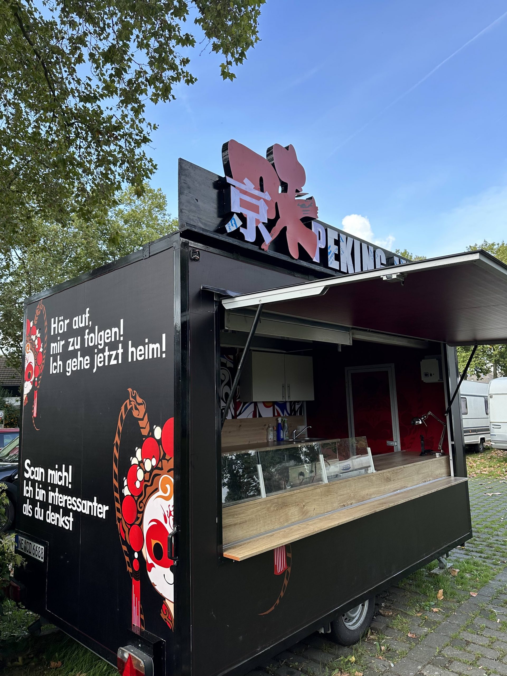 „Wir sind ein Unternehmen, das sich darauf konzentriert, Ihnen authentische und köstliche neue chinesische Schnellgerichte zu bringen. Unser Foodtruck ist von den einzigartigen Gesichtsmasken des chinesischen Peking-Oper inspiriert, geschickt kombiniert Tradition und Moderne, mit einem lebendigen und lebhaften Farbschema. Wir haben sorgfältig sechs repräsentative chinesische Snacks und drei Hauptgerichte ausgewählt, darunter traditionelle Xiaolongbao, Pekinger Zha Jiang Nudeln und authentische chinesische Getränke.“